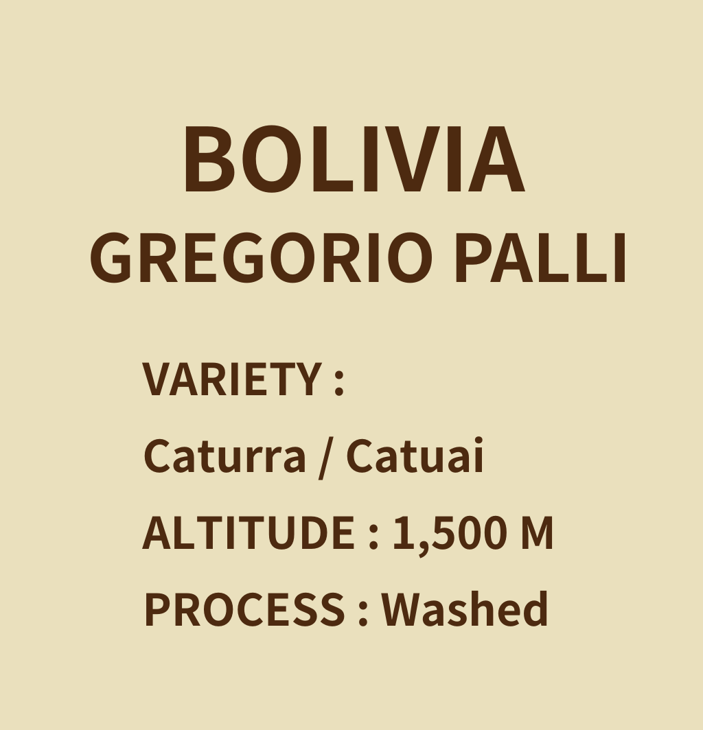 - 生產者: Gregorio Palli 是玻利維亞知名的咖啡農,也是當地 Sol de la Mañana(晨曦)計畫的成員之一。該計畫旨在透過專業培訓與資源共享,提升小農的種植技術與咖啡品質。