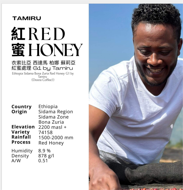 此批次來自衣索比亞 Sidama的咖啡生產者與出口商-Tamiru Tadesse,他創立了 Alo Coffee 品牌,致力於提升本地精品咖啡的品質與市場價值,並幫助周邊農民改善收入與經營條件。2021 年他提交的咖啡批次在 Ethiopia Cup of Excellence(COE,衣索比亞卓越杯)比賽中獲得第一名與第五名的佳績,因此在精品咖啡界聲名大噪。
